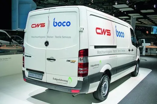 Wo möglich stellt Dienstleister CWS Boco seine Flotte auf schadstoffarme Fahrzeuge um und bekam im Sommer als Erster den neuen Erdgas-Sprinter 316 NGT.
