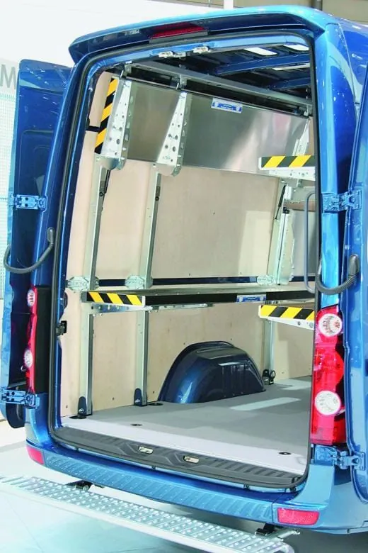 Der Remscheider Ausbauer HAFA realisiert beispielsweise mit dem schwedischen System Edström ein herausziehbares Sortimentsregal für Servicefahrzeuge.