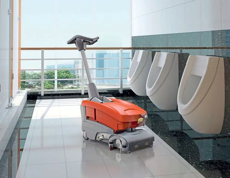 Ein Knopfdruck genügt, um den Reinigungsvorgang zu starten. Auch die Wartung ist einfach: Die Walzenbürste lässt sich dank Bürstenverschleißanzeige schnell kontrollieren. Der Bürstenwechsel erfolgt einfach und werkzeuglos. Ebenso leicht ist der Austausch der Lithium-Ionen-Batterie durchführbar. Eine Dosierhilfe im Tankdeckel unterstützt den Anwender dabei, die richtige Menge an Reinigungschemie einzufüllen. Der herausnehmbare Schmutzwassertank ermöglicht die unkomplizierte Reinigung der Maschine nach dem Einsatz.