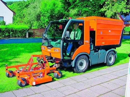 Mit dem Tremo Carrier hat Multicar einen kompakten Schmalspur-Geräteträger für viele Einsatzmöglichkeiten vorgestellt. In Kombination mit der Mäh-Saug-Kombination von Wicke ermöglicht er zeitgleiches Mähen und Aufnehmen von Grünschnitt: Das Duo verfügt über eine Arbeitsbreite von 150 cm. Während des Mähens mit dem höhenverstellbaren Sichelmähwerk transportiert die Turbine das Mähgut in den 2,2 m³ großen Saugcontainer. Der Antrieb erfolgt über eine Zweikreishydraulik, die sowohl Container als auch Mähwerk trotz ihres unterschiedlichen Leistungsbedarfs gleichzeitig antreibt. Der Mäh-Saug-Aufbau ist innerhalb von 30 Minuten in Einmannbedienung auf dem Fahrzeug auf- und abgesattelt, so dass der Geräteträger schnell für die nächste Anwendung umgerüstet ist.