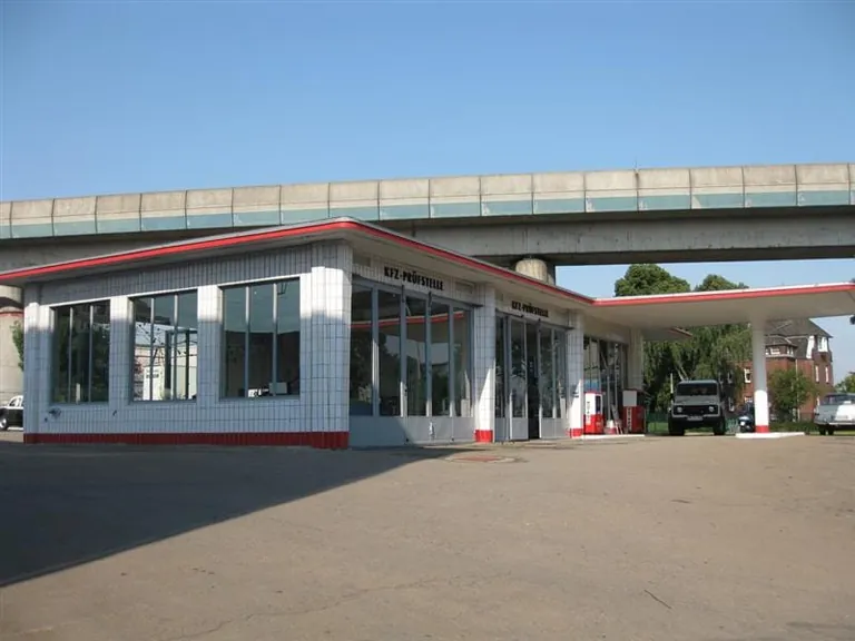 Die Tankstelle von 1953 steht aufgrund ihrer verkehrshistorischen Bedeutung unter Denkmalschutz. Fast zwanzig Jahre schon wurde sie nicht mehr als Tankstelle genutzt, als die heutigen Betreiber sie entdeckten und mit Unterstützung der Freien und Hansestadt Hamburg begannen, ihr Konzept für die denkmalgerechte Sanierung und Wiederinbetriebnahme umzusetzen. Nach einer umfangreichen Befunduntersuchung wurde unter anderem das Dach wieder instand gesetzt und gedämmt, sämtliche Ausbaudetails wie Türen und Fenster wurden repariert beziehungsweise erneuert, die technische Infrastruktur wie Heizung und Wasserinstallation saniert und die historischen Oberflächen im Innen- und Außenbereich originalgetreu wiederhergestellt, ebenso wie die historischen Zapfsäulen, das 50er-Jahre-Interieur und die markanten Neon-Lichtbänder im Dach.