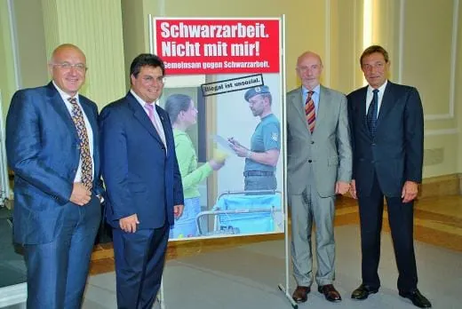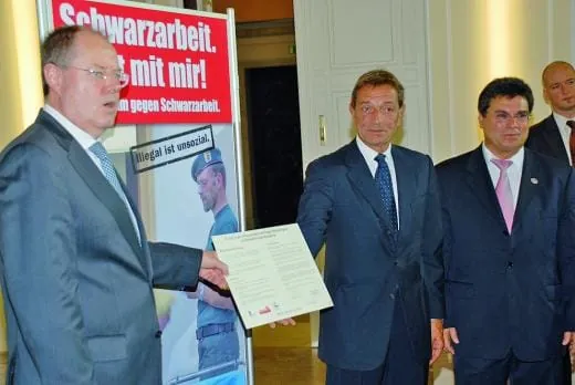 „Schwarzarbeit hat immer Saison und Schwarzarbeit ist auch kein Kavaliersdelikt, Schwarzarbeit verursacht jährlich Milliardenschäden und ist kriminell“, eröffnete der Bundesfinanzminister die Runde. Und er zeigte sich entschlossen, rigoros gegen das Übel vorzugehen. Schließlich zahlten alle Ehrlichen die Zeche; Steuern und Sozialversicherungbeiträge könnten gesenkt werden, wenn man der Schwarzarbeit Herr würde. Minister Steinbrück zeigte sich vor diesem Hintergrund sehr zufrieden, dass mit dem Gebäudereiniger-Handwerk die vierte Branche mit einem Bündnis gegen Schwarzarbeit ins Boot geholt werden konnte. „Die noch engere Zusammenarbeit und regelmäßige Kommunikation zwischen den Bündnispartnern wird dazu beitragen, Schwarzarbeit und illegale Beschäftigung weiter zurückzudrängen, einen fairen Wettbewerb zu sichern und legale Arbeitsplätze zu erhalten“, so der Bundesfinanzminister.