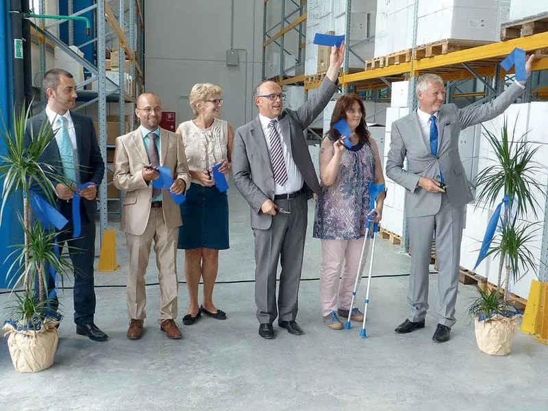 Feierliche Eröffnung (v.li.): Daniel Hutter (Leiter Logistik), Johann Eisenberger (Standortentwickler), Angelika Matt-Heidegger (Oberbürgermeisterin Kirchheim unter Teck), Hans Georg Hagleitner, Elisabeth Krämer (Organisationsleiterin) und Christian Böck (Vertriebsleiter Stuttgart, Nürnberg, Frankfurt).