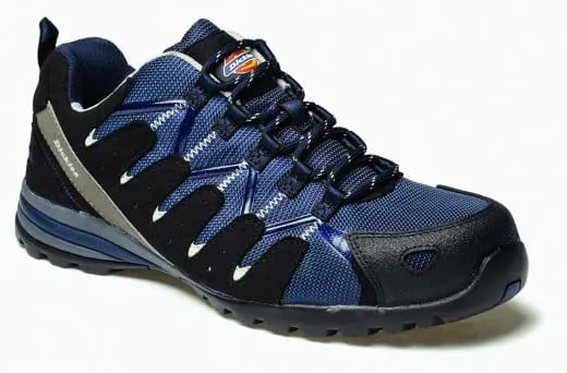 Sportliche Sicherheitsschuhe erfreuen sich immer größerer Beliebtheit - so auch das Modell Super Safety Tiber S3 von Dickies. Der Sicherheitssportschuh verbindet modernes Design mit Sicherheit und Tragekomfort. Sein Obermaterial aus wasserfestem Mesh, die nichtmetallische, durchtrittsichere Sohle sowie Zehenschutzkappen aus Verbundwerkstoff nach EN 20345 (200 Joule) machen ihn zu einem leichten Sicherheitsschuh der Klasse S3. Der Fersenbereich ist stoßabsorbierend, Schaft und Lasche sind weich gepolstert. Für zusätzliche Sicherheit sorgt die rutschsichere Laufsohle nach SRA-Standard, welche antistatisch und ölbeständig ist.