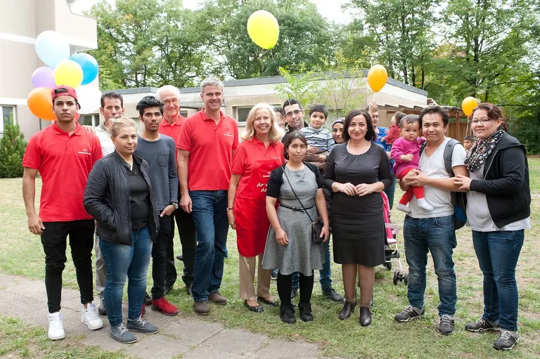 Über 40 Dussmann-Mitarbeiter kamen im Rahmen eines sozialen Tags in eine Unterkunft für Asylbewerber in Berlin. Die Mitarbeiter engagierten sich für die asylsuchenden Menschen, die im Heinrich-Plett-Haus eine vorübergehende Unterkunft gefunden haben. Darunter war auch Catherine von Fürstenberg-Dussmann (Vorsitzende des Stiftungsrates der Dussmann Group), Dirk Brouwers (Vorsitzender des Vorstandes) und Dr. Hans-Jürgen Meyer (Vorstand Finanzen).
