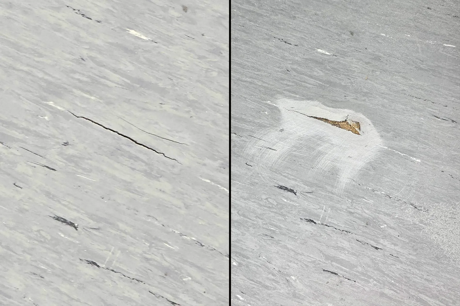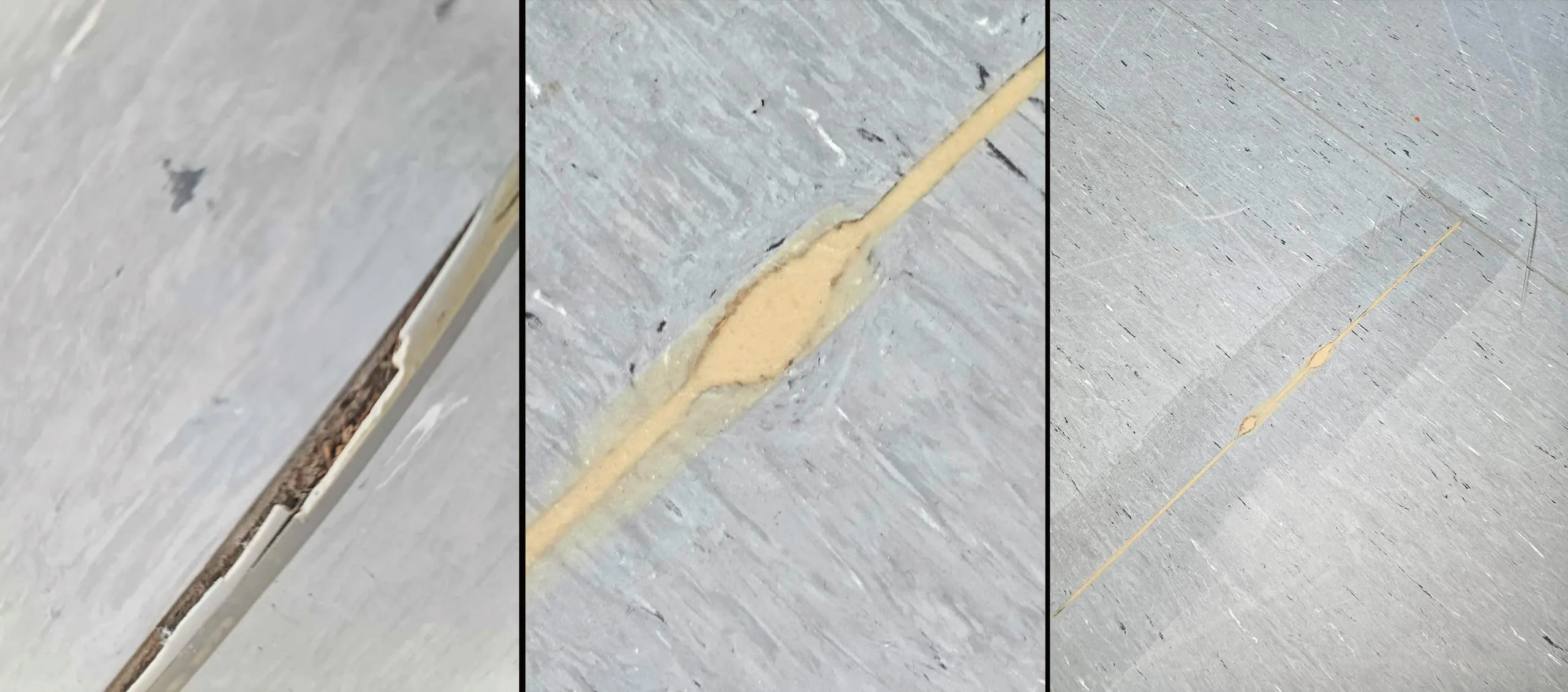 Hierzu wurden folgende Arbeiten durchgeführt. Die Bereiche, bei denen die Schweißnähte beschädigt waren und sich durch die eingedrungene Feuchtigkeit aufgestellt hatten, wurden plan geschliffen. In Teilbereichen kam es hierbei zu Ausbrüchen, die mit einer PU-Ausgleichsmasse verfüllt wurden. Nach dem Abtrocknen wurde die Schadstelle durch PU-Siegel vor eindringender Feuchtigkeit geschützt..