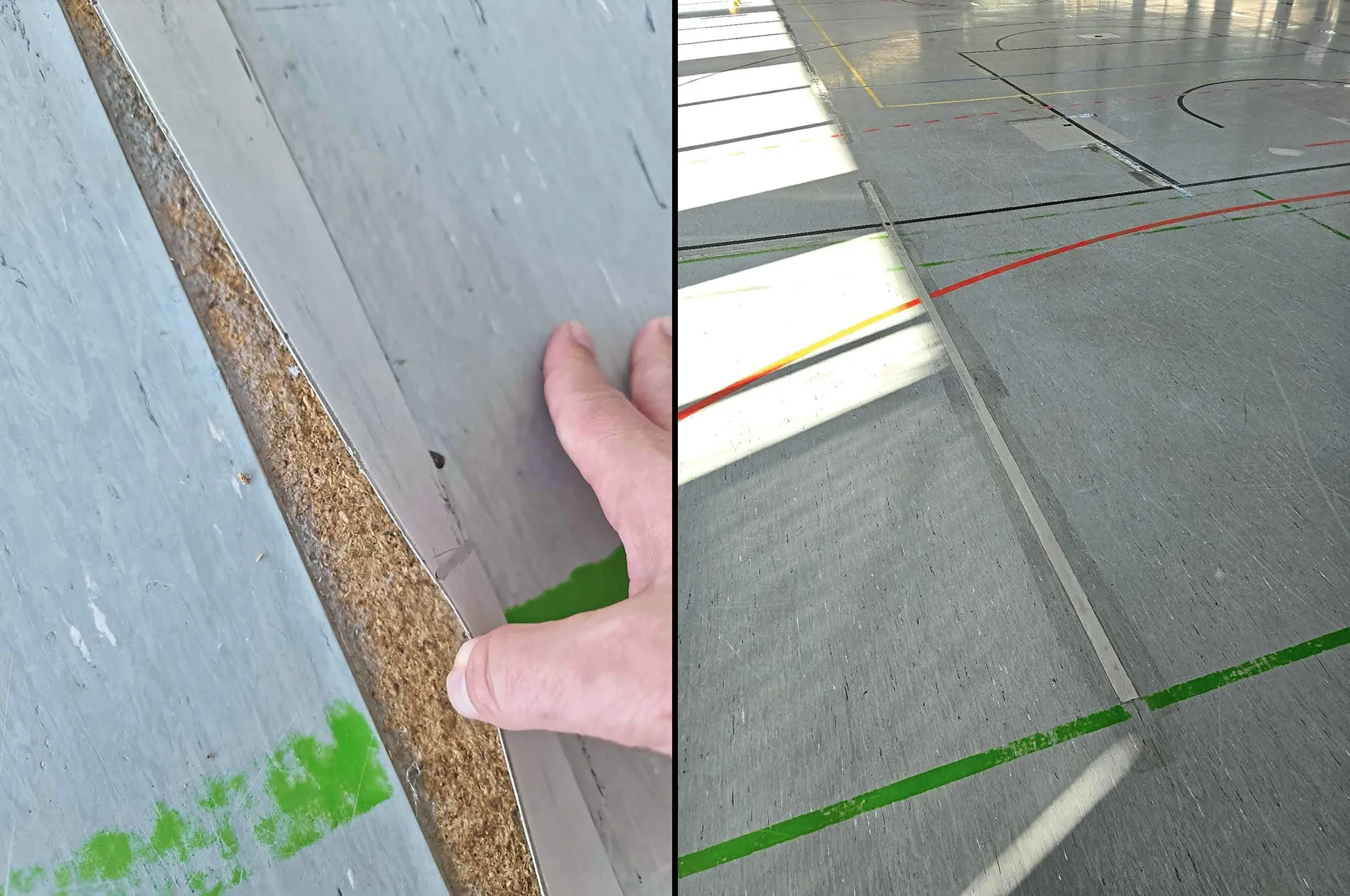 Sporthallenboden durch Reinigung beschädigt: Reparatur vor Sanierung