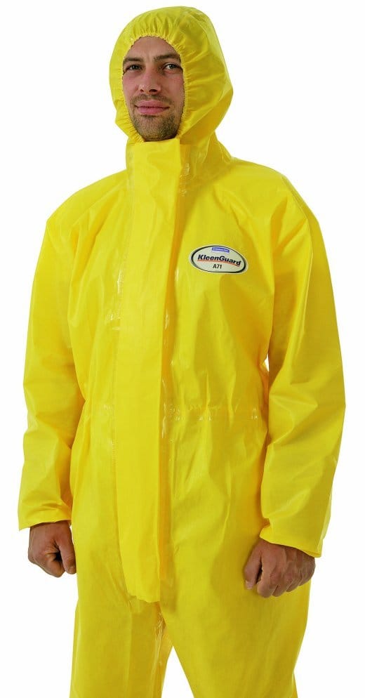 Kimberly-Clark hat einen sprüh- und partikeldichten Chemikalienschutzanzug mit Namen Kleenguard A71 auf den Markt gebracht. Er ist geeignet für den Umgang mit flüssigen Gefahrstoffen sowie bei Dampfstrahl- und Wartungsarbeiten u.a. in Industrie und Gewerbe. Der Anzug bietet Schutzleistung gemäß Typ 3 und 4 (EN14605:2005) sowie Schutz vor Elektrostatik (EN1149-1:1995) und Infektionserregern (EN14126:2003). Ein doppelter Klettverschluss macht das An- und Ausziehen sowie erneutes Verschließen einfach. Für Tragekomfort sorgt ein spezieller Schnitt im Kapuzen-, Körper- und Taillenbereich.