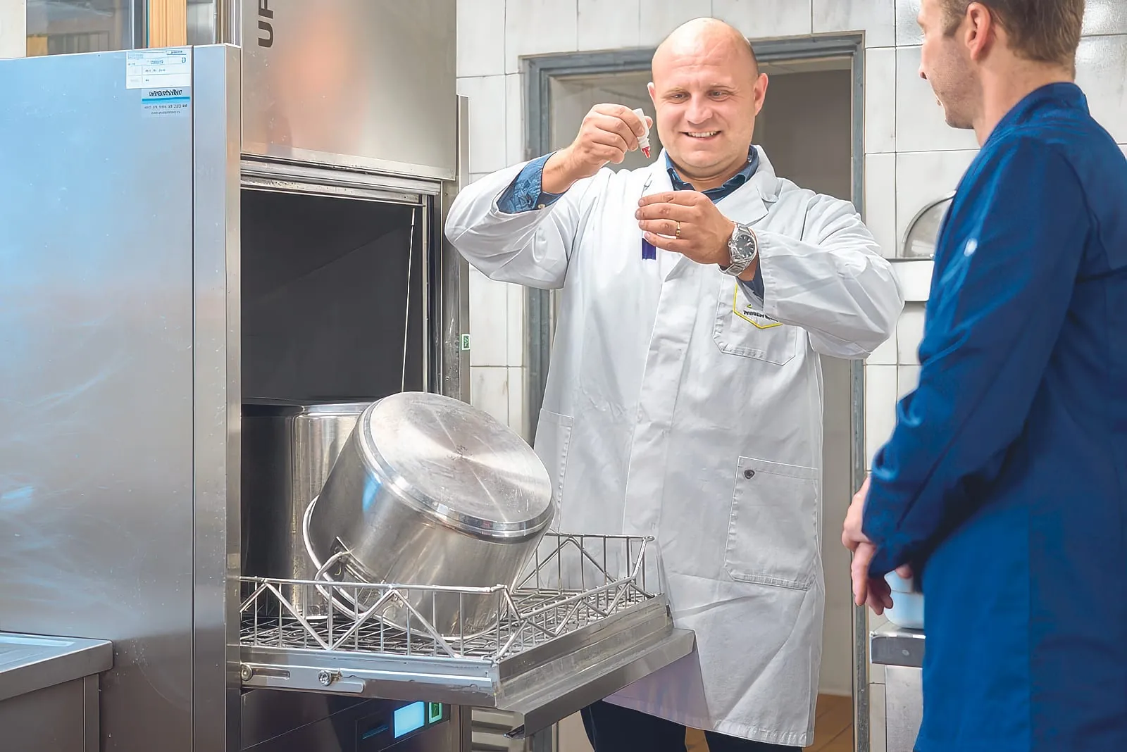 Großküchen sind Herzstücke von Pflegeheimen, Krankenhäusern, Hotels und anderen Einrichtungen, die eine konstante Versorgung mit frisch zubereiteten Mahlzeiten sicherstellen müssen. Hier muss jede Entscheidung unter dem Gesichtspunkt der Effizienz getroffen werden. Dies gilt sowohl für den Personaleinsatz als auch für den Einsatz von Geräten, Reinigungsmitteln und Ressourcen. Zudem dürfen keine Kompromisse bei der Hygiene eingegangen werden, da es meist strikte gesetzliche Vorgaben gibt. Ein besonderes Augenmerk liegt dabei auf der Reduktion der Reinigertank- und der Frischwassertemperatur.