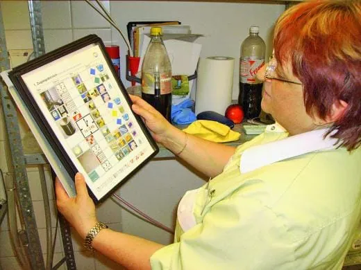 Eine 16-seitige Betriebsanleitung und ein je nach Einsatz durch unterschiedliche Farben gekennzeichnetes Arbeitsgerät gewährleisten einen gleich bleibenden Qualitätsstandard im Hygienemanagement. Helga Orglmeister ist begeistert von den optisch übersichtlichen Anleitungen: „Mit Fotos, Piktogrammen und knappen Texten wird erläutert, in welchen Zeitabständen wir welche Objekte mit welchen Reinigungsmitteln behandeln müssen“, so die Expertin in Sachen Hygiene.