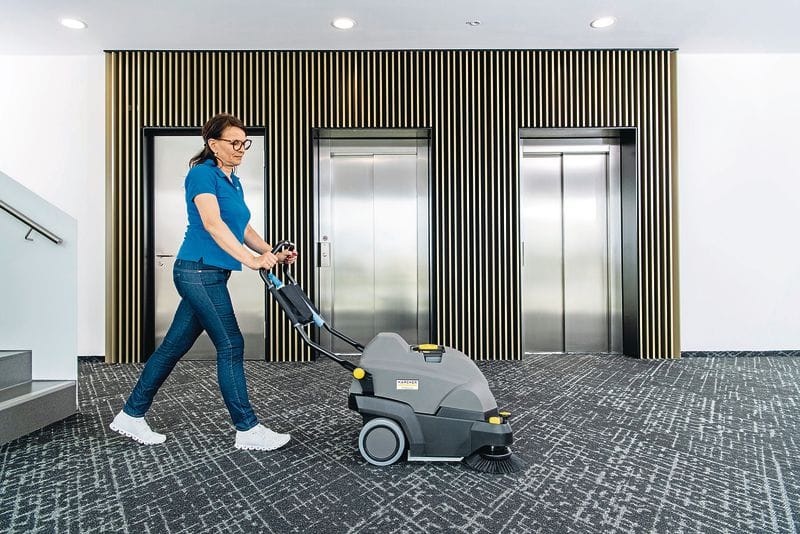 Mit der Teppichkehrsaugmaschine CVS 65/1 von Kärcher lassen sich ­weitläufige Teppichflächen schnell und leise reinigen. - © Kärcher