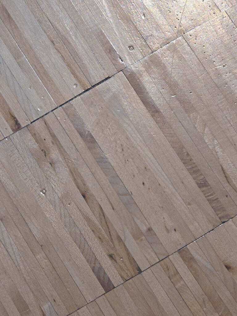 Ahorn-Hochkantlamellenparkett: In einem Konzerthaus wurde regelmäßig mit einer Dispersion gearbeitet, der Lack aber 25 Jahre lang nicht erneuert oder saniert. Dadurch wurde die Oberfläche druckempfindlich – mit entsprechenden Folgen. Wie konnte es dazu kommen?