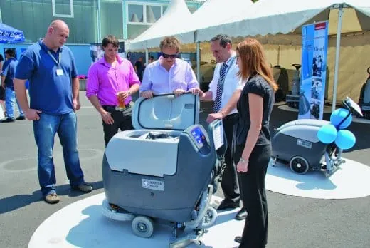 Voll des Lobs zeigte sich auch Ralf Lode, Niederlassungsleiter des Miet- und Gebrauchtmaschinenzentrums. In seiner Ansprache skizzierte er das Leistungsspektrum für Industrieunternehmen, Gebäudereiniger, Dienstleister und Kommunen. Neben dem bundesweiten An-/Verkauf und der Vermietung von Gebrauchtmaschinen sowie den Sonderumbauten und Straßenverkehrszulassungen hob er die kundenindividuelle Aufarbeitung der Maschinen hervor. „Mithilfe einer Klassifizierungsskala - von 1 ‚sehr gut‘ bis 5 ‚Ersatzteilspender‘ - geben unsere Kunden genau vor, wie das gewünschte Gerät beschaffen sein soll. Dieser Service gehört zu unseren Erfolgsrezepten, da er den aktuellen Anforderungen im Gebrauchtmaschinensegment entspricht: professionell aufbereitete Maschinen zu attraktiven Marktpreisen“, so Lode.
