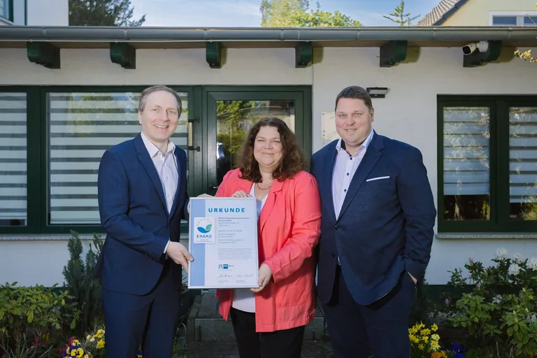 "Die Urkunde markiert einen bedeutenden Meilenstein auf unserem Weg hin zu mehr Nachhaltigkeit und Transparenz" freuen sich Katrin und Gorden Aernecke, die rund 220 Mitarbeiter vor allem in den Bereichen Gebäudereinigung, Hausmeisterservice, Winterdienst und Grünpflege beschäftigen. EMAS sehen sie nicht als Ziel, sondern als "Startpunkt für einen kontinuierlichen Verbesserungsprozess, der unsere Umwelt schützt und gleichzeitig unsere Betriebsabläufe optimiert". Seit Kurzem gehört auch das Waschen von Reinigungstextilien mit Hilfe von Ozon dazu. /HH