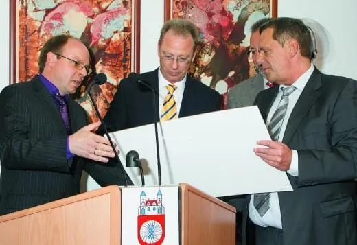 - Die Stadt Hameln hat jahrhundertelange Erfahrung mit der Schädlingsbekämpfung: Was früher der Rattenfänger besorgte, darum kümmern sich heute Gebäudereiniger. Es war also ein überaus symbolträchtiger Ort, an dem der Verbandstag 2010 des Landesinnungsverbandes Nord-West stattfand. Die rund 80 Teilnehmer wurden von einem leibhaftigen Rattenfänger zum Empfang mit der Oberbürgermeisterin im Hamelner Hochzeitshaus begleitet. Dabei gab es Glückwünsche zum 100-jährigen Bestehen der Hamelner Gebäudereinigung Mess. Neben Oberbürgermeisterin Susanne Lippmann gratulierten auch die Landesinnungsmeister Mike Schneider (Landesinnung Niedersachsen) und Wolfgang Kruse (Landesinnung Bremen/Nord-West-Niedersachsen). Sie überreichten Mess-Geschäftsführer Uwe Engel eine Ehrenurkunde der Handwerkskammer.