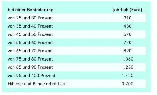 § 33b EStG gesteht Behinderten je nach Grad der Behinderung Pauschbeträge zu: