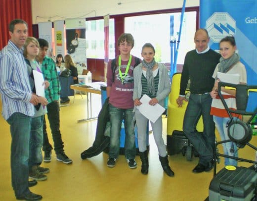 Mit Unterstützung der Firma Kärcher, die verschiedene Reinigungsautomaten zur Verfügung gestellt hatte, präsentierten Landeslehrlingswart Ralf Schneider und Vorstandsmitglied Stefan Rausch einen tollen Messestand. In zahlreichen Gesprächen informierten sie interessierte Schüler der Vorabschluss- und Abschlussklassen der Erweiterten Realschulen Wallerfangen, Rehlingen-Siersburg und Überherrn über Ausbildungsmöglichkeiten und Aufstiegschancen im Gebäudereiniger-Handwerk.