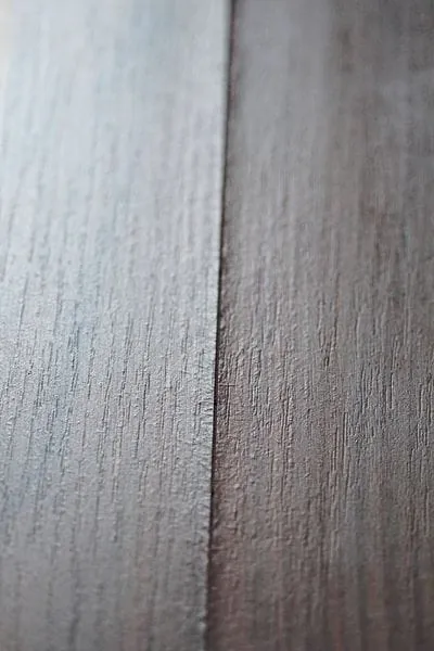 Ein Polyurethanbelag wie auf diesem Bild fühlt sich glatt und strukturiert an, wie liniert. Ein Vinylboden fühlt sich etwas weicher und wärmer an als Laminat, das hohl klingt, wenn man dagegen klopft. Auf die Haptik kann man sich aber nur eingeschränkt verlassen.
