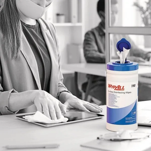 Kimberly-Clark Professional erweitert sein Desinfektionsportfolio um die gebrauchsfertigen WypAll-Wischtücher zur Oberflächendesinfektion. Diese sind bereits mit 70 Prozent Ethanol vorgetränkt und für die allgemeine Desinfektion von Oberflächen konzipiert, ohne chemische Rückstände auf Oberflächen zu hinterlassen. Die Desinfektionszeit beträgt weniger als zwei Minuten, wobei laut Hersteller 99,999 Prozent der häufigsten Bakterien und 99,99 Prozent der Viren, Pilze und Hefen (einschließlich Corona-Viren) beseitigt werden. Die Spenderdose mit wiederverschließbarem Deckel hält für jede kontaminationsfreie Entnahme ein optimal benetztes Tuch bereit. Pro wiederverschließbarer Dose werden 200 handgroße Wischtücher vorgehalten. Diese bestehen aus einem speziellen SMS-Basismaterial, wodurch das Desinfektionsmittel zuverlässig auf die Oberfläche abgegeben wird, statt im Wischtuch zu verbleiben. Dank des strapazierfähigen Dreischichtmaterials können die Tücher auch nicht fusseln oder reißen, wodurch sich das Kontaminationsrisiko beim Desinfizieren minimiert.