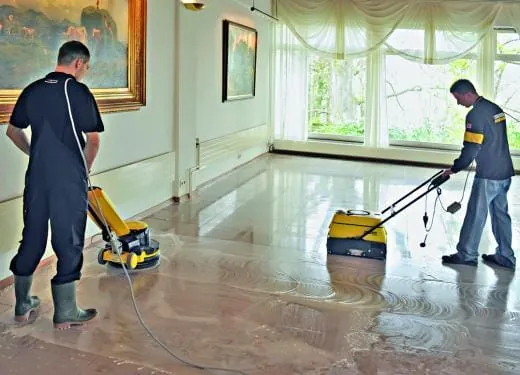1. Der Belag muss grundgereinigt, d. h. fett- und staubfrei sein. Außerdem müssen alle eventuell aufliegenden Pflegefilme entfernt werden.