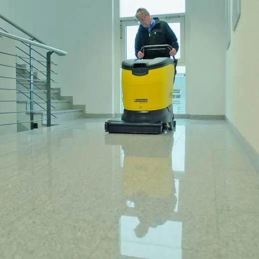 3. Abschließend die kristallisierte Fläche mit der Maschine und klarem Wasser in der Einschrittmethode abfahren, um den durch die Kristallisation entstandenen Staub aufzunehmen.