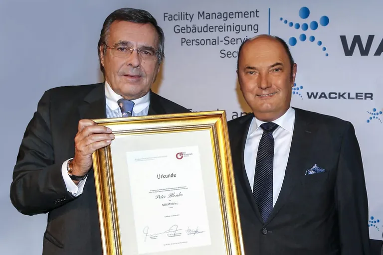 Verbandspräsident Mario Ohoven freute sich, Peter Blenke, langjähriges Mitglied des BVMW, im Kreis der Senatoren begrüßen zu können und würdigte die herausragenden unternehmerischen Leistungen und die Verdienste Peter Blenkes um den deutschen Mittelstand. Seit seinem Eintritt ins Unternehmen habe sich der Umsatz auf rund 100 Millionen Euro verdreifacht, die Zahl der Arbeitsplätze sei von 2.000 auf rund 5.500 gestiegen. Peter Blenke leitet das Unternehmen seit 2008 als alleiniger Vorstand. Es sei ein vorbildliches Beispiel für den starken Mittelstand in Deutschland.