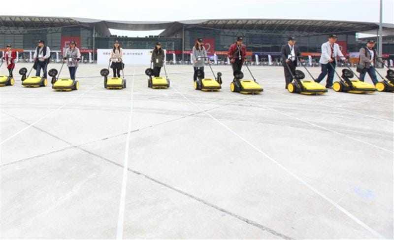 Die internationalen Teilnehmer des Weltrekordversuchs wurden zunächst von Mitarbeitern von Kärcher China mit der Bedienung der Kehrmaschinen-Modelle KM 70/20 C und KM 70/30 C vertraut gemacht, mit denen sich Gehwege und Höfe komfortabel und schnell fegen lassen.