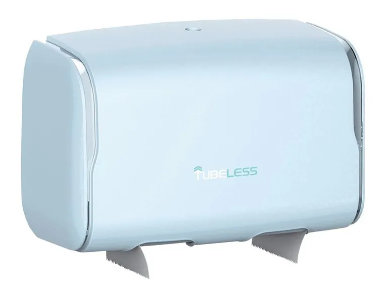 Der Toilettenpapierspender Mini Duo in Eisblau hält zwei Rollen für hochfrequentierte Waschräume bereit. - © Tubeless