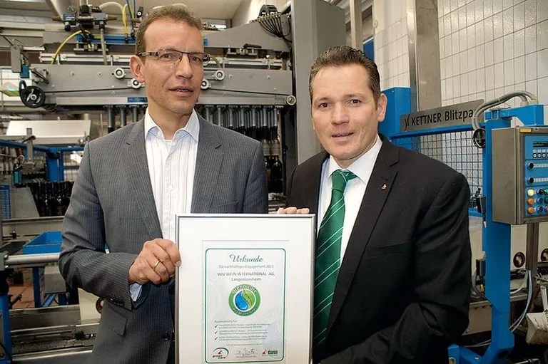 „Wir freuen uns, dass ein so großes Unternehmen wie WIV die hausinterne Reinigung bei seiner Nachhaltigkeitsausrichtung miteinbezieht und sich für ressourcenschonende Reinigungsmittel entschieden hat“, sagte Ulrich Kürbis, Fachberater bei Tana Chemie, bei der Übergabe der Anerkennungsurkunde an Andreas Pieroth, Vorstandsmitglied von WIV Wein International. „Damit ist WIV ein Vorbild in Sachen Nachhaltigkeit und zeigt, dass Umweltfreundlichkeit und die Einhaltung höchster Hygienestandards kein Gegensatz ist“, betonte Kürbis.