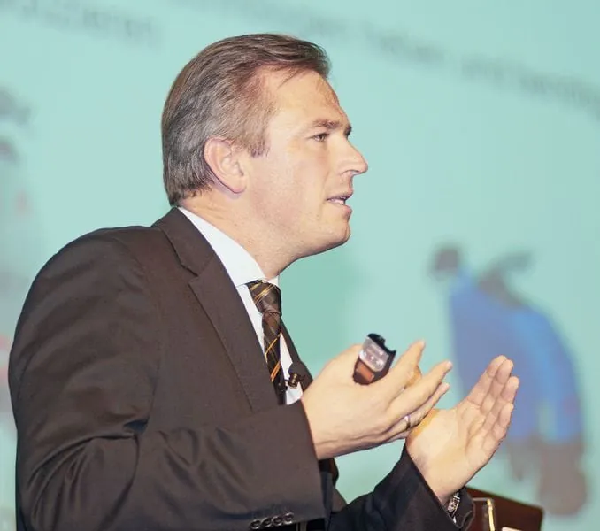 © Micha Wolfson/rationell reinigenMarkus Asch (VDMA, Kärcher) beleuchtete die Megatrends der Zukunft und zeigte daraus resultierende Entwicklungen für die Reinigungsbranche auf. -