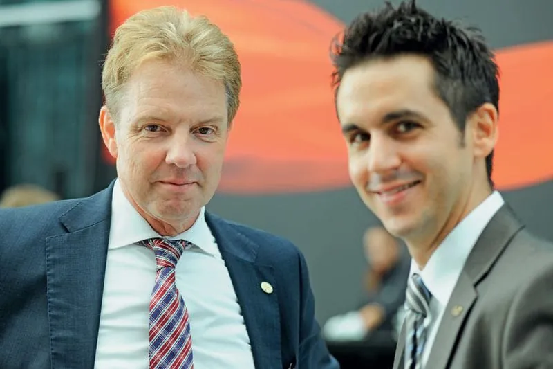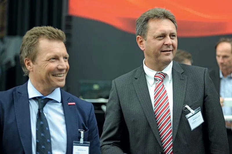 © Micha Wolfson/rationell reinigen02 Marko Hache (li., Hako GmbH) und Michael Klawitter (Birgroup). -