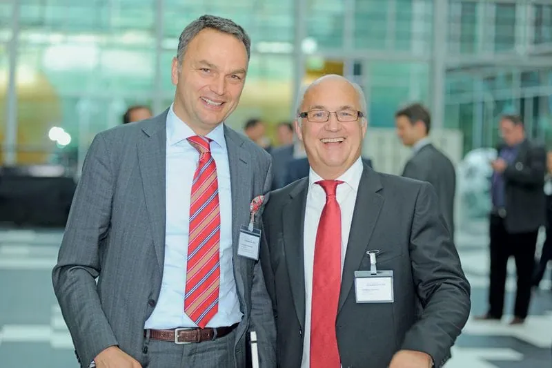 © Micha Wolfson/rationell reinigen03 Christoph H. Neumann (li., Sicherheitshalber) und Wolfgang Fischbach (Fischbach Gebäudereinigung). -