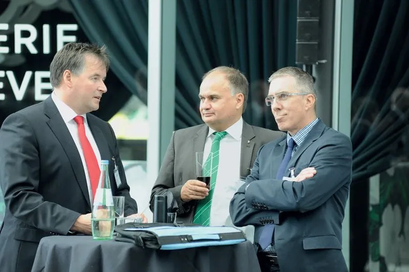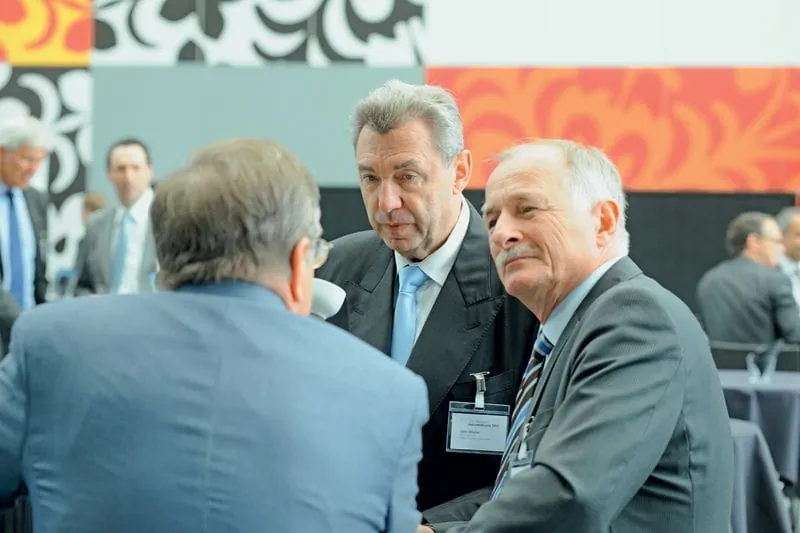 © Micha Wolfson/rationell reinigenZu den Highlights des Branchenkongresses gehörte der Vortrag von Heinz Buschkowsky (li.), Bezirksbürgermeister von Berlin-Neukölln - hier im Gespräch mit BIV-Geschäftsführer Johannes Bungart (re.) und Hans Ziegle, Vorstandsmitglied der Innung Rheinhessen-Pfalz. -