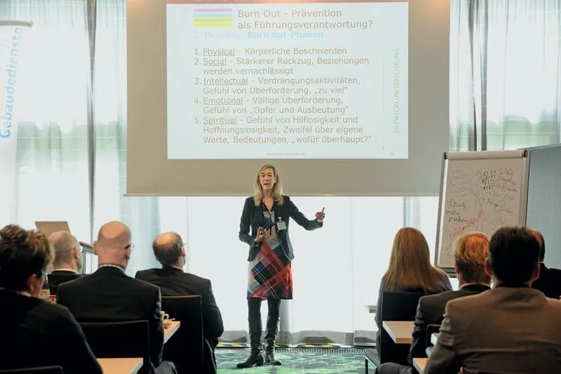 © Micha Wolfson/rationell reinigenEva Wieprecht (Beraterin und Trainerin) sprach über Burn-out-Prävention als Führungsverantwortung. -