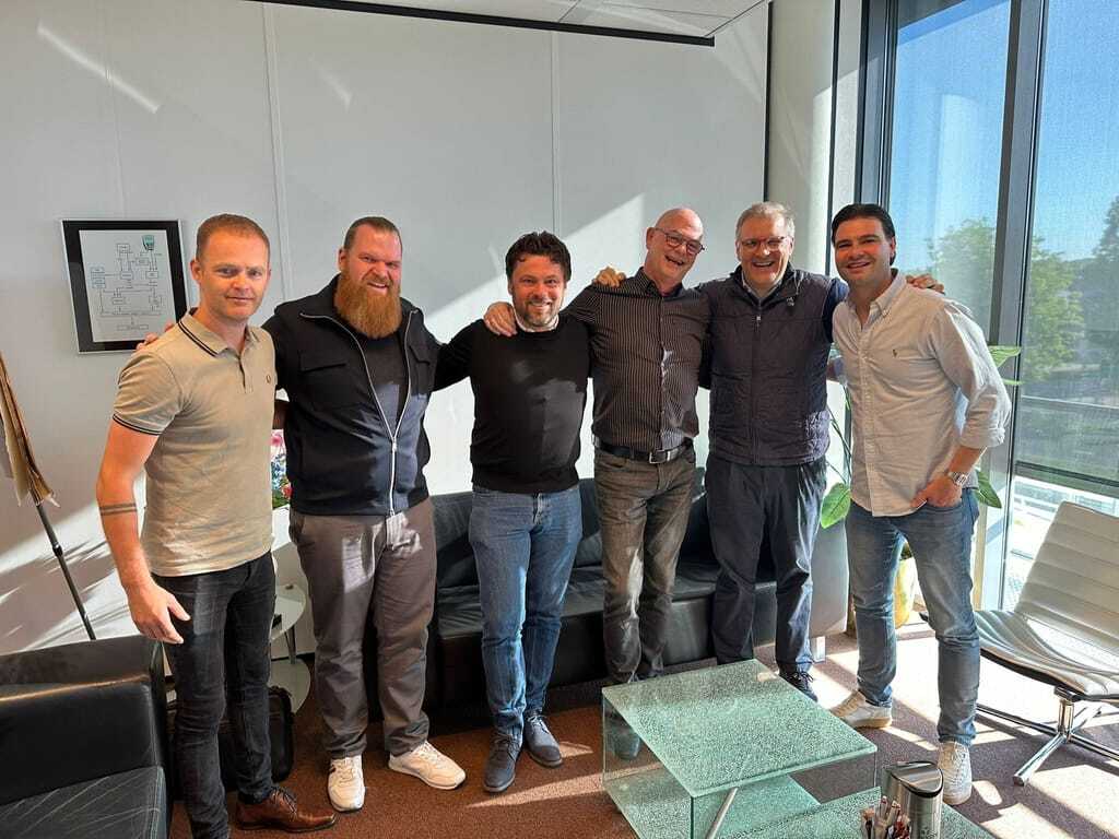 Freuen sich auf die Zusammenarbeit (v.li.): Rob von den Hoogen (COO, Nocore), Stefan Kramer (CEO, Zvoove Clean und Zvoove Recruit), Jan-Willem Spuij (CTO, Nocore), Ad Klöster (CEO, Nocore), Oliver Muhr (CEO, Zvoove) und Job Klösters (Business Unit Manager Cleaning Services, Nocore). - © Zvoove
